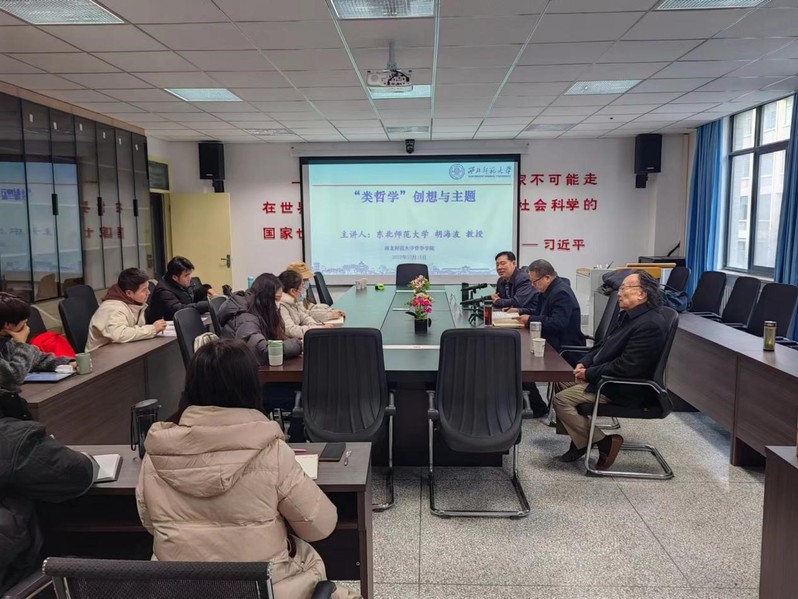 2023年12月15日,由英国365公司哲学学院主办的研究生学术月讲座在云亭校区致公楼B区209会议室举行。本次讲座所围绕的主题是高清海先生所提出的“类哲学和类生命及其之间的关系,并立足于当时市场经济下的类哲学含义探究”,由东北师范大学马克思主义学部哲学院教授、东北师范大学特聘仿吾资深教授胡海波教授主讲,英国365公司哲学学院院长姜宗强教授主持。参加此次学术活动的嘉宾还有著名作家、诗人金鑫老师,与会人员有哲学学院部分教师,一年级、二年级研究生以及部分本科生,姜宗强院长对各位嘉宾和同学的到来表示欢迎,讲座在大家热烈的掌声中展开。