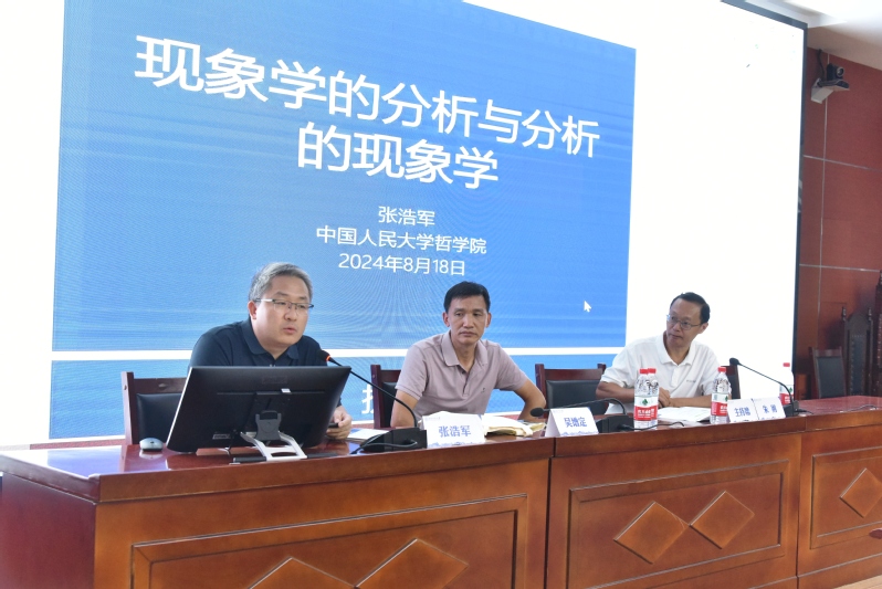 第二场报告由张浩军教授主讲,张教授的大会报告名为“现象学的分析与分析的现象学”。张教授从“何谓分析”“何谓现象学的分析”“现象学的分析是何种分析”“何谓分析的现象学”“分析的现象学”五个主题入手,在此基础上,他澄清了分析现象学与经典现象学、分析哲学之间的关系,以及它的研究对象和研究方法。最后,他指出这一实践使得现象学在当下焕发出新的生命,成为了一门新型的哲学,其融合了分析哲学与现象学的理论和方法,直面哲学问题,超越了传统的哲学意识形态和话语体系,成为21世纪西方哲学的新形态和新潮流。