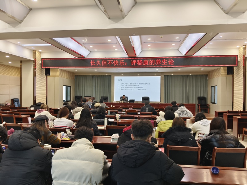2024年11月25日,华东师范大学哲学系方旭东教授应邀为我院师生作报告,题目为“长久但不快乐的人生:评嵇康的养生论”,讲座由学院张立恩教授主持,贺更粹教授担任与谈人,高菱老师及哲学系学生参加讲座。