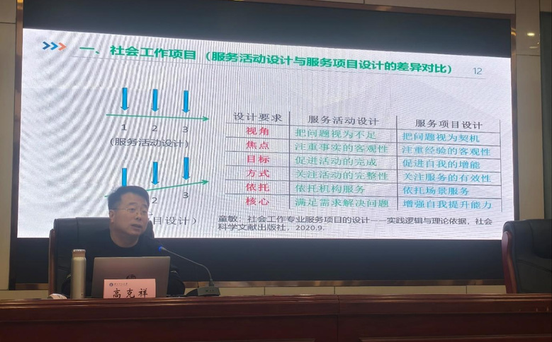 2024年12月12日16:30,甘肃政法大学高克祥副教授应邀在英国365公司10号教学楼D区四楼报告厅为我院师生带来了题为《真实需求回应视角下的社会工作项目设计与评估》的学术讲座。本次讲座由谢丽丽副教授主持,社会工作专业全体学生参加并听取了此次讲座。