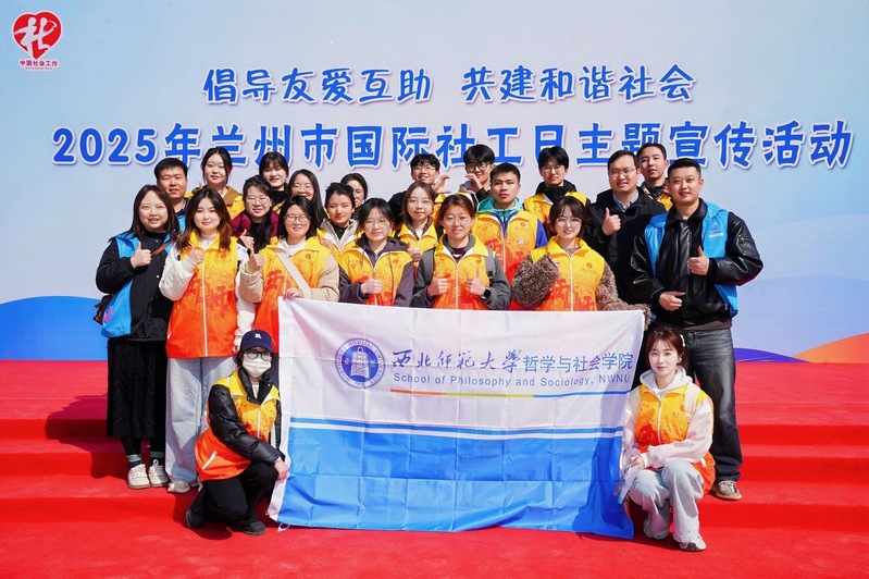 2025年3月18日上午,学院师生受邀前往兰州市民广场参加由市委社会工作部、市委组织部、市教育局、市民政局、市司法局、市卫生健康委、市总工会、团市委、市妇联、市残联联合主办,兰州市社会工作协会承办的“倡导友爱互助 共建和谐社会”2025年兰州市国际社工日主题宣传活动。