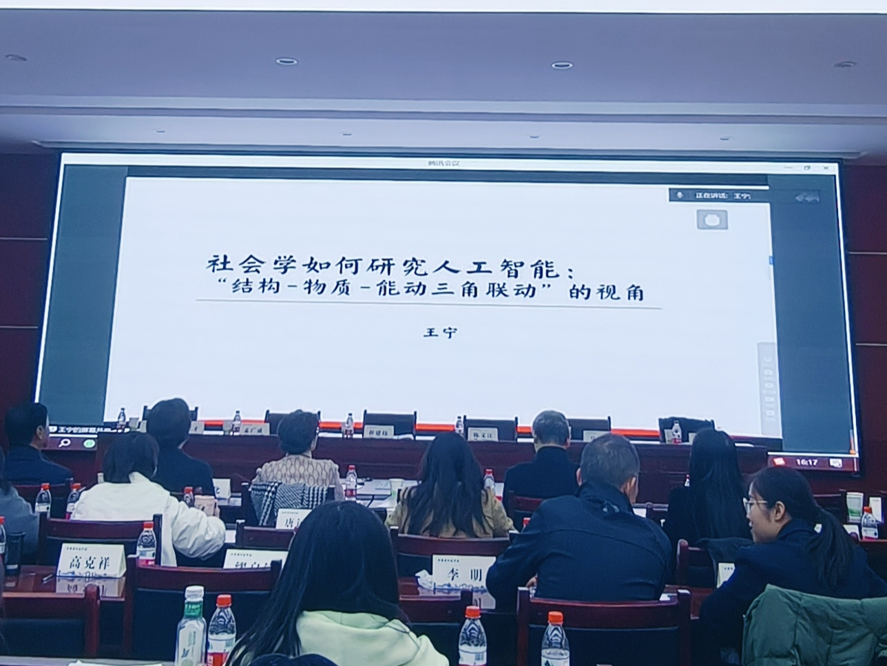 2025年3月30日下午,东南大学王宁教授应邀在英国365公司致公楼E区一楼模拟法庭为我院师生带来了题为“社会学如何分析人工智能---一个‘结构-物质-能动三角联动’的视角”的学术讲座。本次讲座由李怀教授主持,社会学与社会工作专业学生参加并听取了此次讲座。