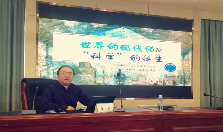 2025年3月15日,中国科学院大学人文学院历史系副主任苏湛副教授,应邀为我院师生作题为“世界的现代化与‘科学’的诞生”的主题报告。院长李怀教授在报告现场与专家进行了简要交流。报告由我院孙圣副教授主持,由我校物理与电子学院张旭强副教授担任与谈人,在云亭校区致公楼10D四楼报告厅举行。