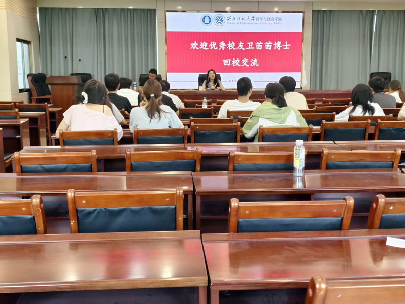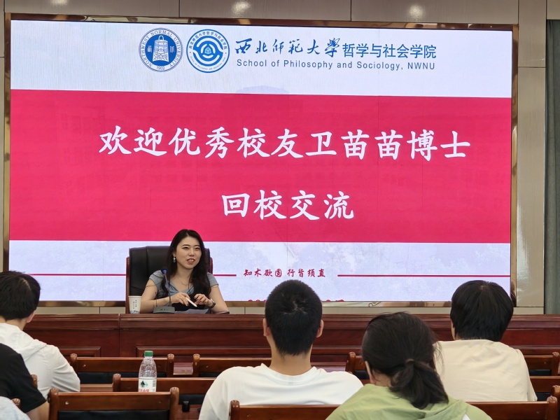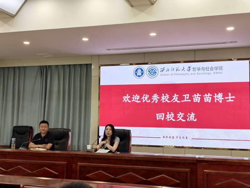 卫苗苗博士于2013 年毕业于我校哲学本科专业,是学院培养的第一届哲学本科毕业生。在座谈中,她首先深情回顾了在师大读哲学本科期间的专业学习经历。她表示,哲学专业系统的课程设置,从古希腊哲学到现代西方哲学,从中国传统哲学到马克思主义哲学,构建起了她坚实的理论基础。老师们严谨的治学态度、深入浅出的教学方法,不仅让她掌握了专业知识,更培养了她批判性思维和逻辑分析能力。在浓厚的学术氛围中,她积极参与课堂讨论、学术沙龙和课题研究,每一次思维的碰撞都让她对哲学有了更深层次的理解。