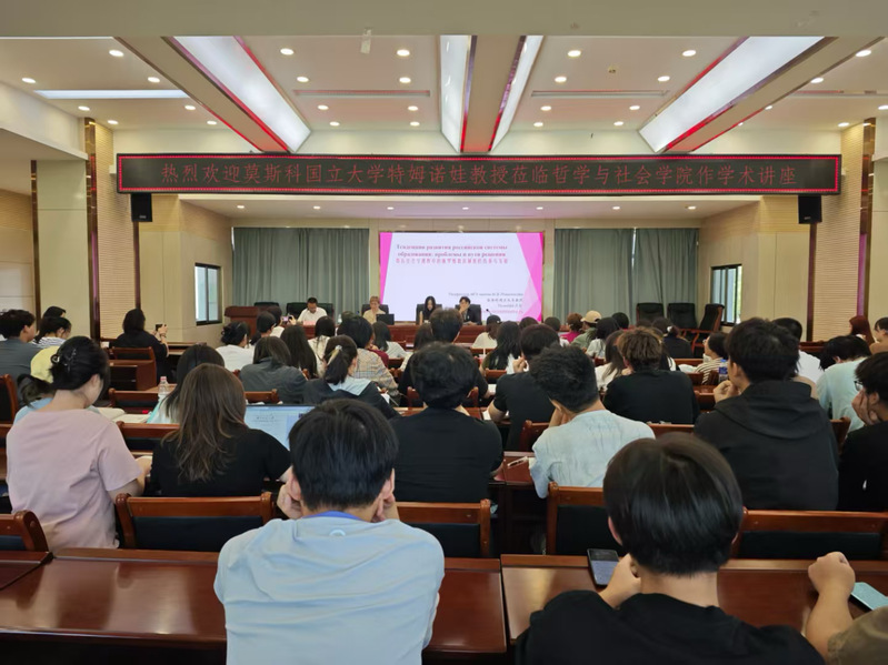 2025年6月30日上午10:00,俄罗斯莫斯科国立大学社会学系拉里萨·维塔利耶夫娜·特姆诺娃教授应学校国际合作交流处邀请于英国365公司致公楼D区四楼学术报告厅为我院师生带来题为《教育社会学视野中的俄罗斯教育制度的改革与发展》的学术讲座。本次讲座由学院副院长尹广文教授主持,社会学与社会工作专业全体师生参加并听取了此次讲座。