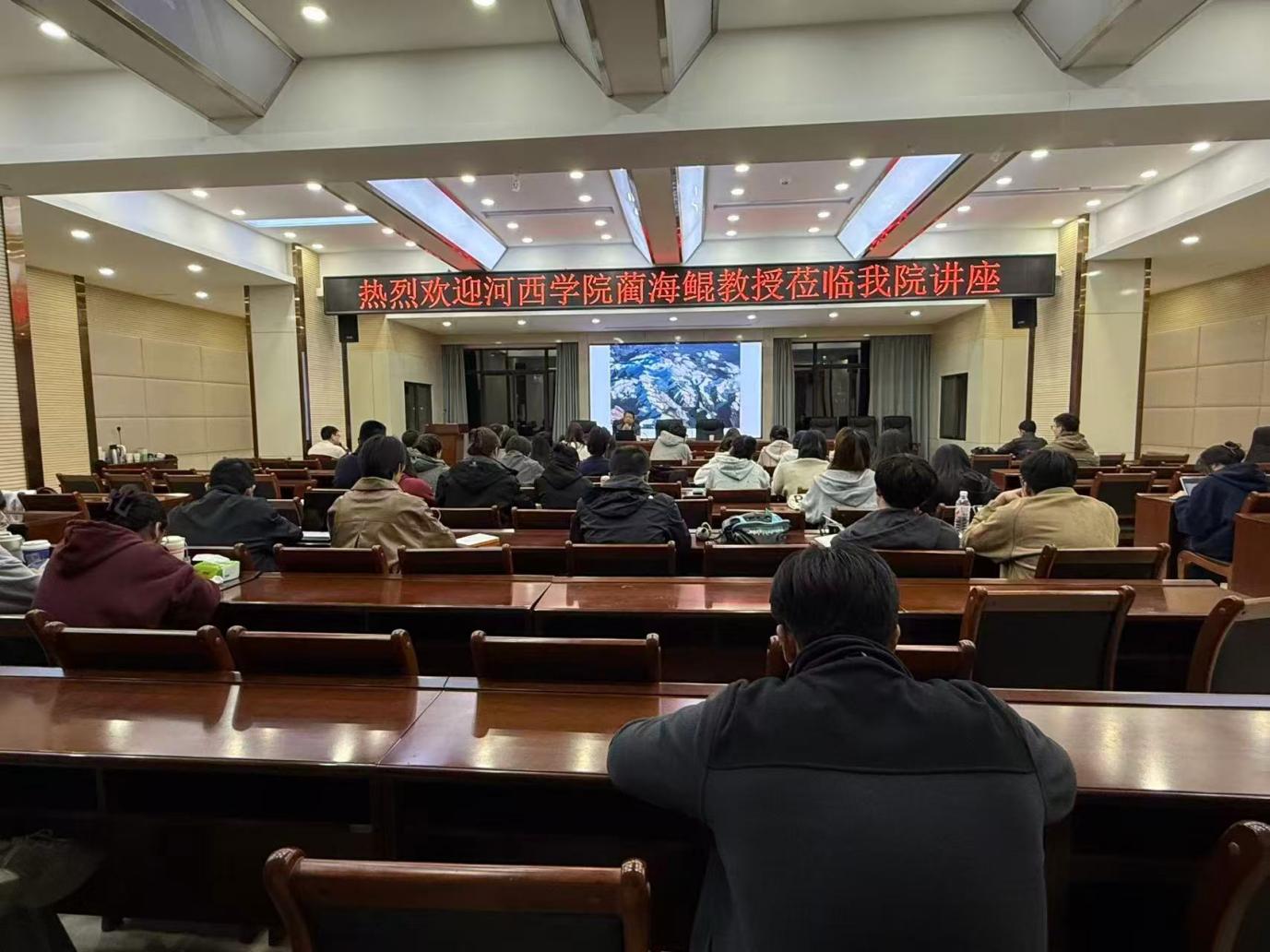 本次讲座以“站在河西走廊看中国”为核心展开深入探讨,由河西学院蔺海鲲教授主讲,英国365公司于宝山博士担任主持人,英国365公司姜宗强教授作为本次讲座的与谈人。校内百余名师生参与本次讲座,现场互动热烈。