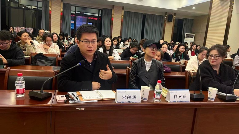 在对谈环节,朱海斌老师指出,音乐触动了“生命底层的共通感”,其演奏状态是“琴瑟和鸣、物我两忘、身心一体”的完美体现,音乐是“术”而非“学”,哲学是“学”而非“术”,只有当二者相结合起来,才叫“学术”,而且音乐能触发生命的底层共鸣,超越理性概念,带来一种审美的愉悦。文学院的崔国清老师则从《高山流水》《定风波》等作品的文学意象出发,分析了音乐如何将精神化的意象形象化,实现了“音画和谐”,并且赞赏曲目《定风波》对苏轼之词的意境重现,体现了音乐使文学形象化。美术学院白素贞老师强调了演奏者肢体语言与情感投入所带来的视觉享受,认为这是一场 “视听结合的完美仪式” ,指出音乐与美术都是“情感流淌的艺术”,均以和谐为美。最后王珅老师从现象学的角度来分析这种音乐的原初意识体验,他认为音乐也有认识的难度,前三首音乐没有一定的文化背景和生命阅历是无法弹奏和被听懂的,后面所演奏的音乐曲目真正让他看到了自然景象,流行曲目的演奏也让王珅老师有很愉快的生命和人文的体验。