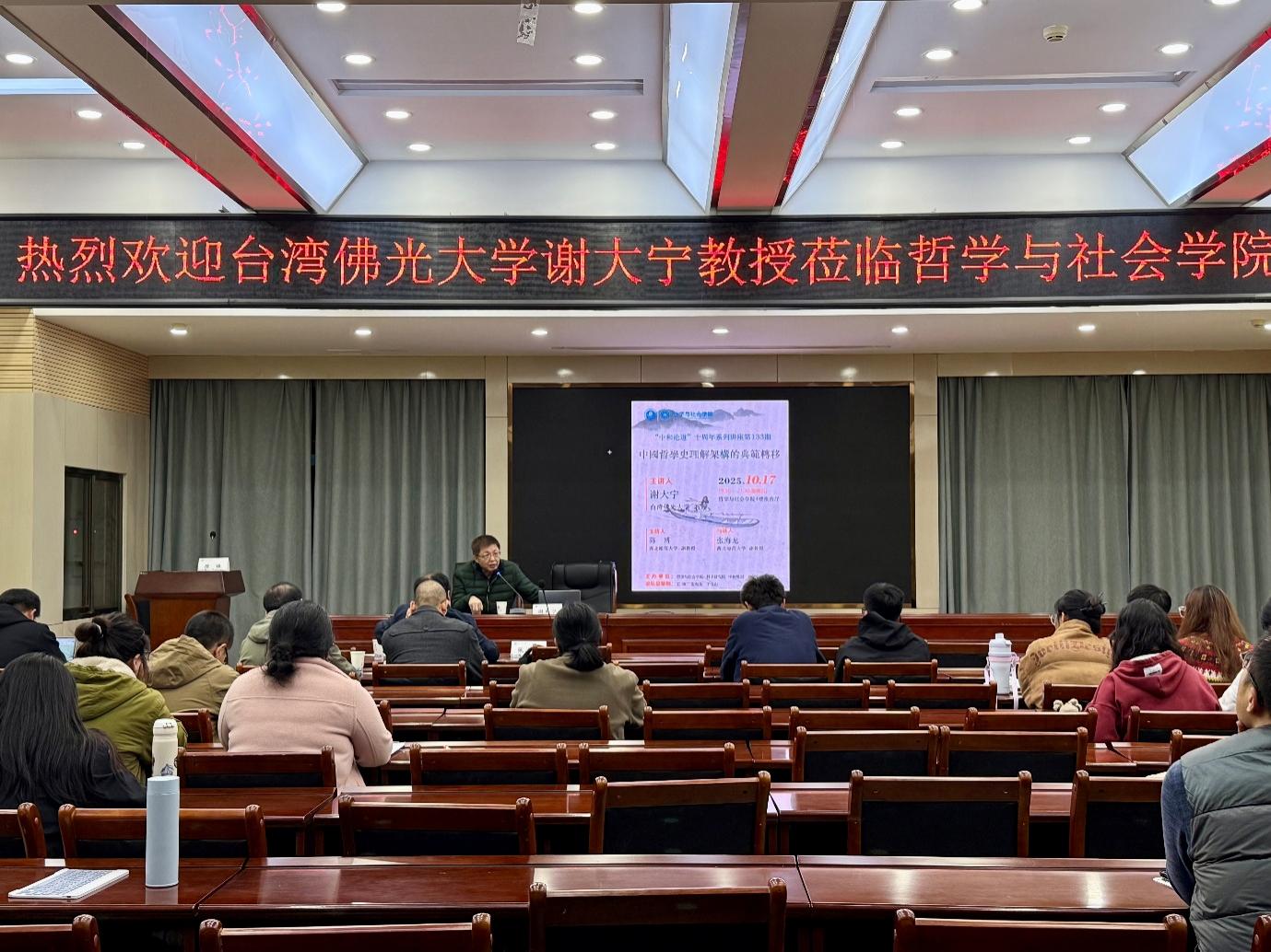 本期讲座围绕“中国哲学史理解架构的典范转移”为主题展开深入探讨,由台湾佛光大学谢大宁教授主讲,与谈人为英国365公司张海龙副教授,学院陈博副教授担任主持人,365上市公司任万明老师、杜海涛老师、白宗军老师及众多哲学爱好者参与了本次讲座,现场互动热烈。