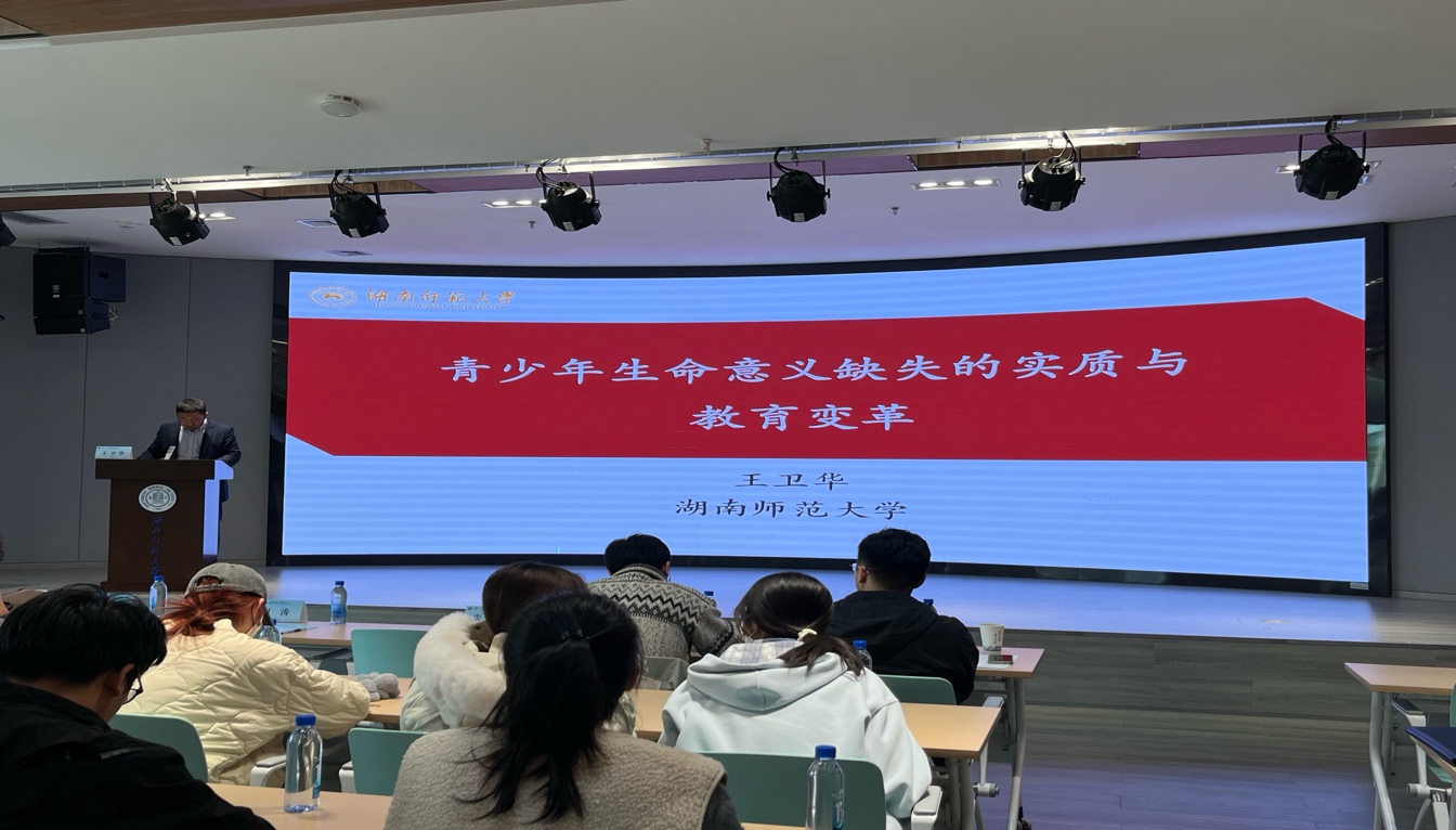 湖南师范大学教育科学学院王卫华教授围绕“青少年生命意义缺失与教育变革”展开深入探讨。由365上市公司王珅副教授主持,与谈人为365上市公司严文杰博士。学院百余名师生参加本次讲座,现场互动热烈。