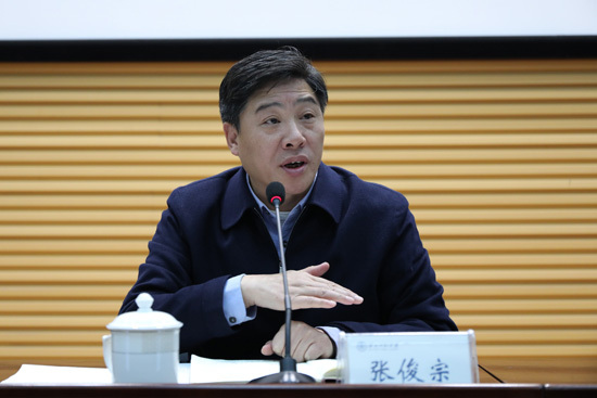 张俊宗强调,人才培养的核心是教学,要以本科教学工作会议、学位点建设与研究生教育工作会议召开为契机,从明晰目标定位、强化快速反馈、加强过程管理等方面着手,进一步调动教师教学和学生学习两方面的积极性,创新教学方式方法,提升教师信息技术应用能力,切实提高人才培养的能力和水平;要从推动学校未来事业发展的高度进一步突出科学研究的重要性,学院是科学研究的主战场,院长是一线指挥员,要注重团队建设,激活科研平台,从人才队伍、制度建设、权责义务、成果认定等方面入手,破立并举,全力攻坚,合力破题,力争在应用研究领域实现重点突破;要发挥联动性、带动性作用,打造援疆实习支教“升级版”,启动民族教育试验区建设,彰显学校民族教育特色;要发挥学校办学优势,助力乡村文化建设,投入更多精力做好教育精准扶贫工作,为圆满完成扶贫攻坚任务提供文化服务和智力支持;要围绕乡村振兴战略,以新农村发展研究院为平台,整合人才队伍,开展乡村文明、乡村文学、乡村经济、乡村教育、乡村政权建设等研究,形成大团队、大集合、大成果,使其成为学校科学研究新的突破点和增长点;要围绕“一带一路”建设,扩大对外合作办学渠道,提升国际合作交流水平;要以华夏文明传承发展协同创新中心和刚刚获批的中华优秀传统文化传承基地为平台,讲好中国故事,弘扬中国精神;要加大人才引进力度,加强干部队伍建设,开动脑筋,多措并举,挖掘人才资源潜力,实施好“云亭”青年教授计划,畅通青年教师职称晋升渠道;要高度重视继续教育工作,建立健全开放共享办学机制,用好用活学校办学资源,下大功夫推进校园智能化管理和后勤服务保障;要靠实党建工作和意识形态工作责任,深入推进党风廉政建设,增强基层党组织的凝聚力、战斗力;要着力加强和谐校园和文明校园建设,倡导有情有义的精神风尚,使“各美其美、美人之美,美美与共”的观念深入人心,为高水平大学建设汇聚强大正能量,鼓足干劲,努力奔跑,追梦圆梦。